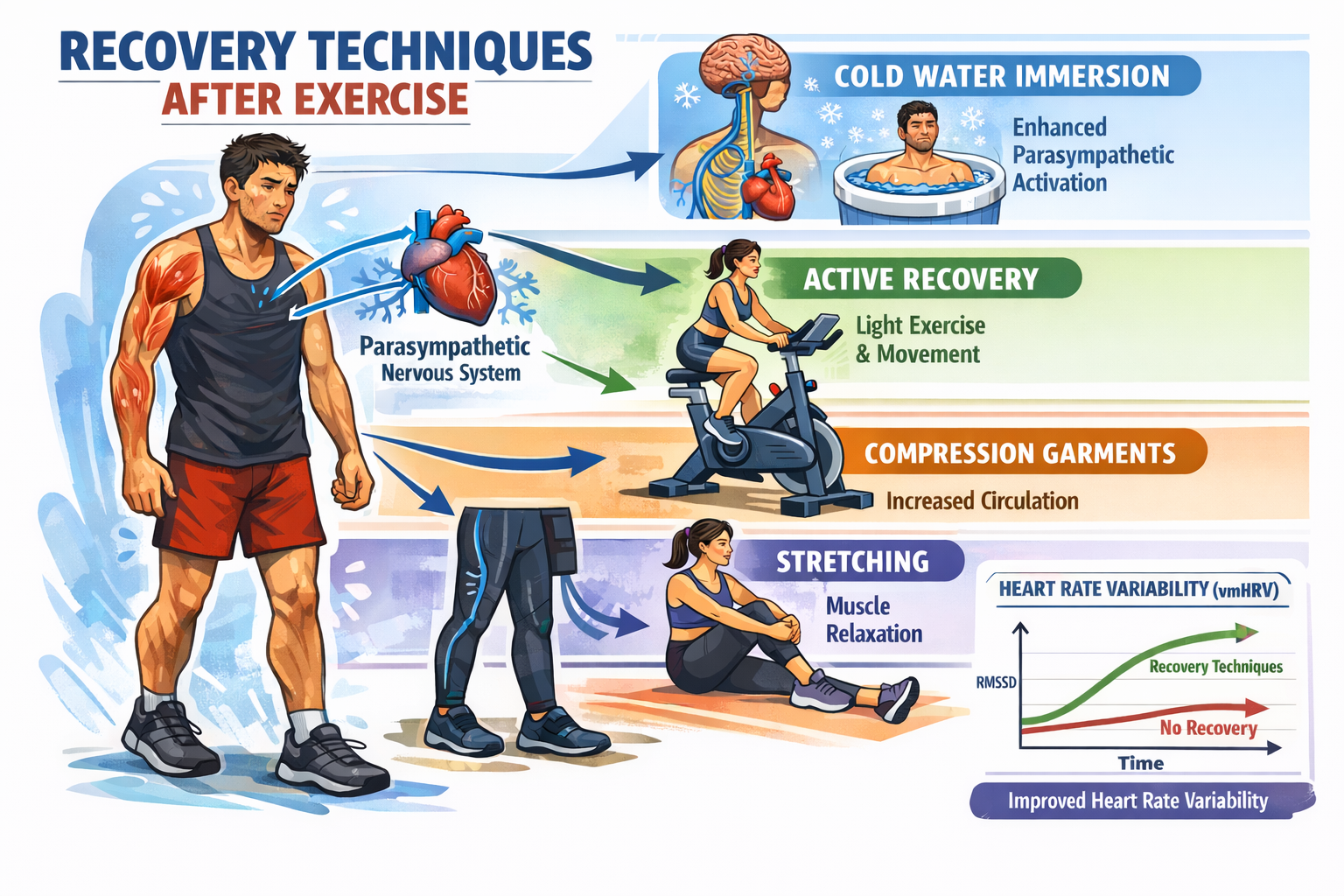 - Laborde, S., Wanders, J., Mosley, E., & Javelle, F. (2024). Influence of physical post-exercise recovery techniques on vagally-mediated heart rate variability: A systematic review and meta-analysis. Clinical Physiology and Functional Imaging, 44(1), 14–35. https://doi.org/10.1111/cpf.12855