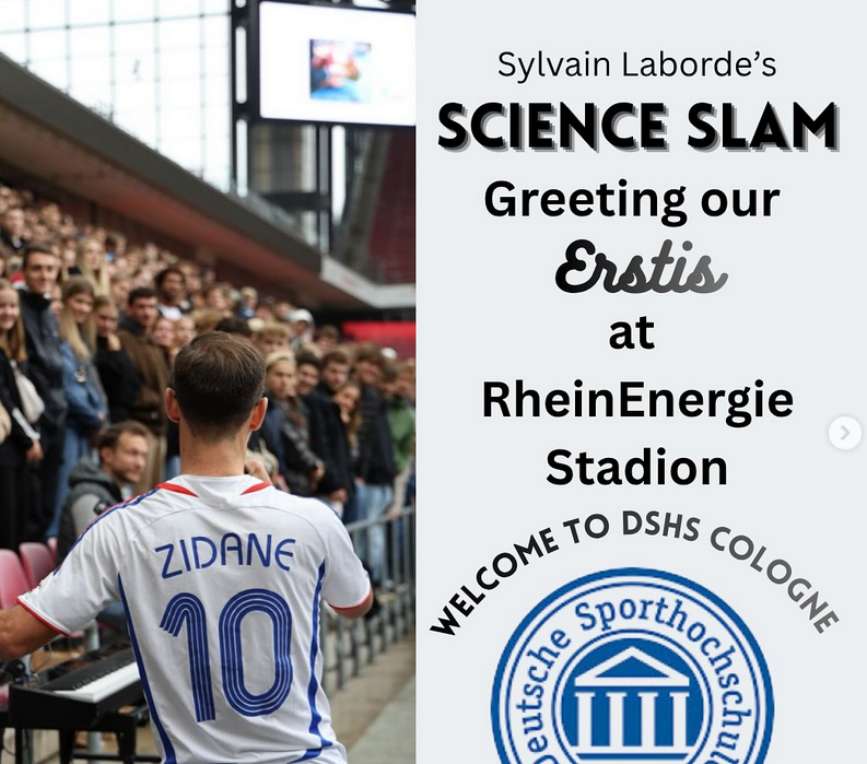 Throwback to Dr. Sylvain Laborde's Science Slam at RheinEnergieSTADION, greeting our freshmen. (Part 1-4)